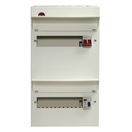 Wylex 26 Way Duplex High Integrity + 100A Main Switch, 2x80A 30mA Type A RCD Features Full metal duplex enclosure Fixed busbar assembly 26W Hig...