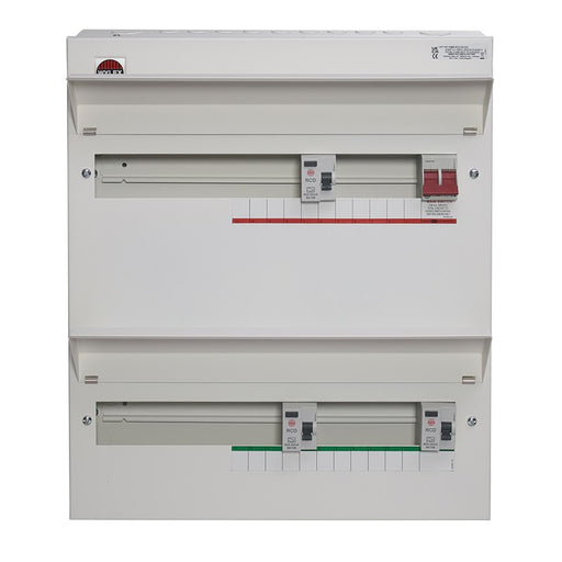 Wylex 12 Way Duplex High Integrity + 100A Main Switch, 3x80A 30mA Type A RCD Features Full metal duplex enclosure Flexible busbar assembly 12W...