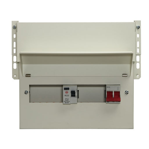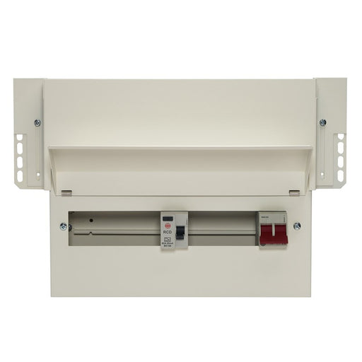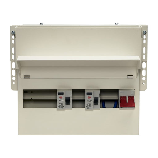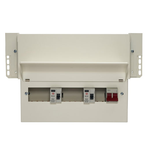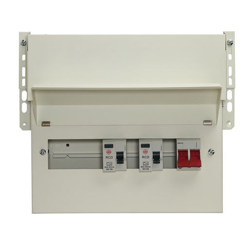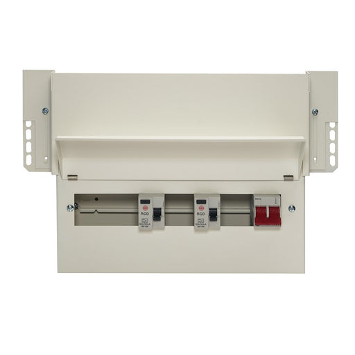 Wylex 10 Way (4+4+2) High Integrity Meter Cabinet + 100A Main Switch, 2x80A 30mA Type A RCD Features All metal meter cabinet consumer unit Flex...