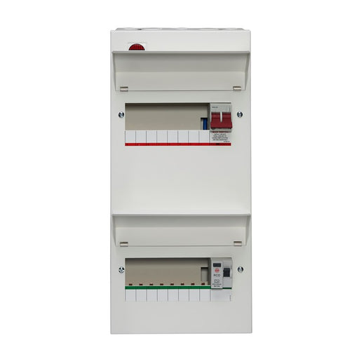 Wylex 12 Way Split Load + 100A Main Switch, 100A 30mA Type A RCD Features Full metal enclosure Flexible busbar assembly 12W Split load 1x 100A ...
