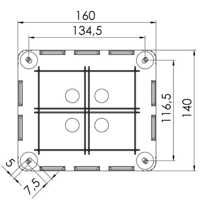 - External dimensions LxWxH: 160 x 140 x 81mm