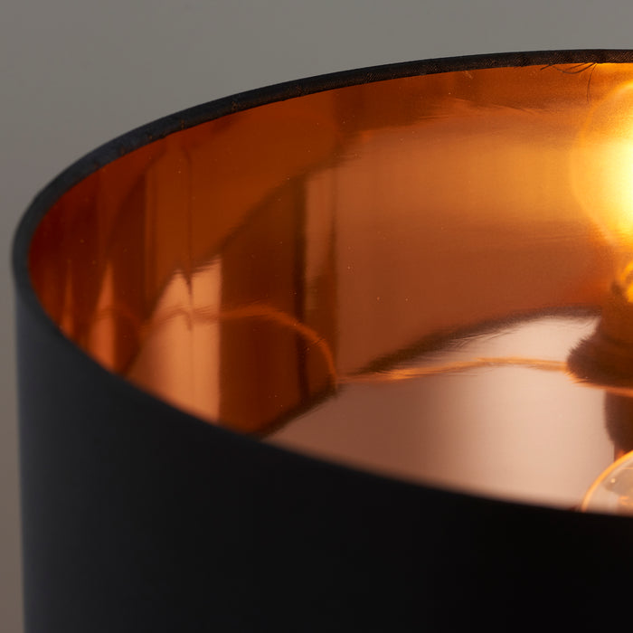 Endon 61149 Waldorf 1lt Table Copper glass & black fabric 60W E27 GLS (Required)