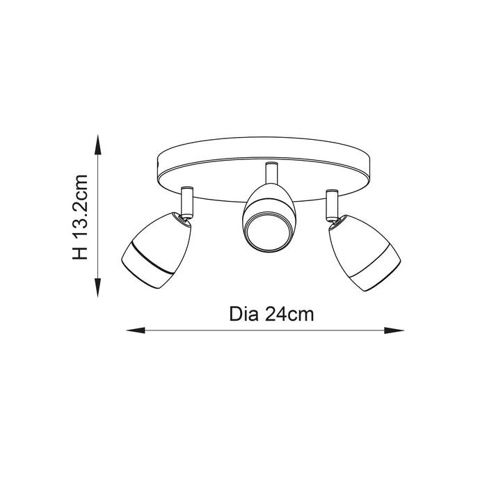 Product DescriptionA 3 light LED bathroom spotlight with smooth curved lines finished in a chrome effect plate. IP44 so suitable for use in the bathroom. Dimmable and matching single light available.