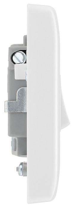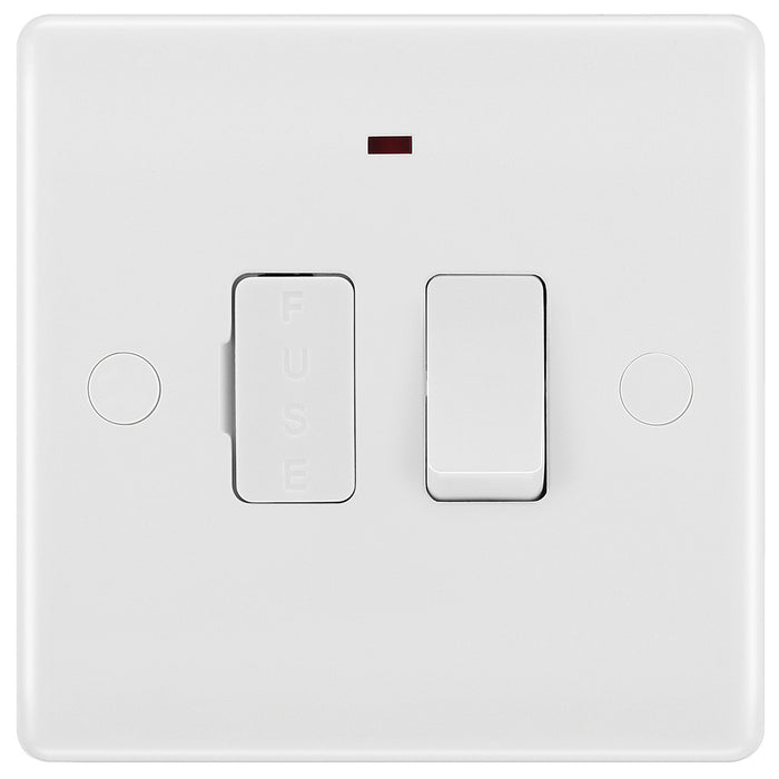 BG 853 White Round Edge Switched Spur + Neon + Cable Outlet