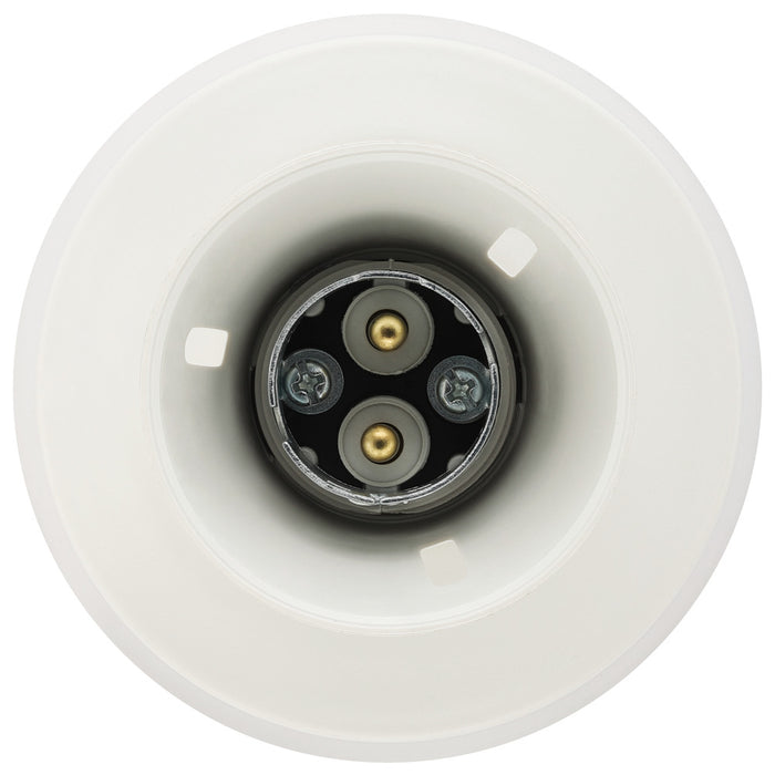 The wiring aperture features an additional knockout for ease of installation, while the base cover can be removed without detaching the HO skirt. Designed for moisture-prone environments, the HO skirt prevents accidental contact with the lamp’s metal cap, making it ideal for kitchens, bathrooms, and similar damp locations.
