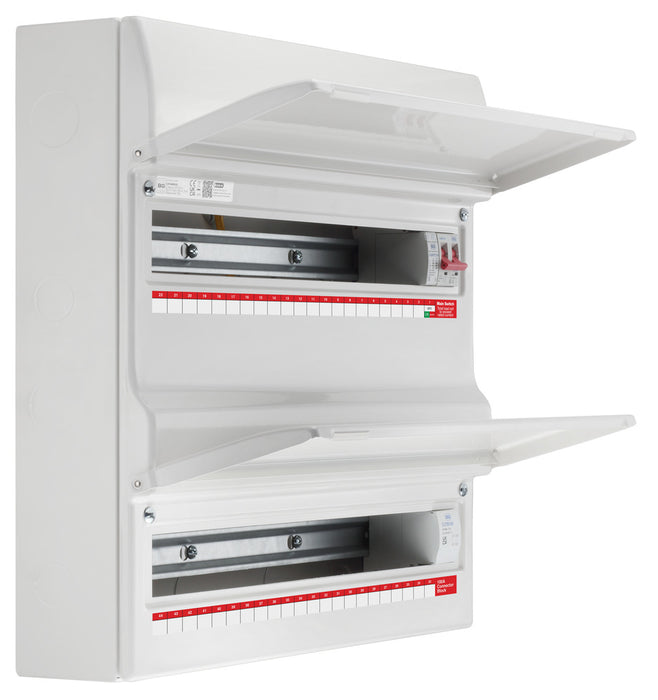 BG Fortress CF248MS43 48 Module 43 Way Unpopulated Metal Dual Row Consumer Unit with 100A Main Switch, 100A Terminal Block & 1x SPD