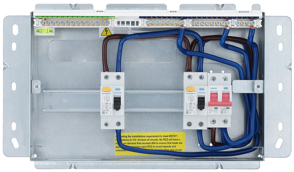 BG 16 Module 10 Way Fully Recessed Unpopulated + 100A Switch, 2x100A Type A 30mA RCD
