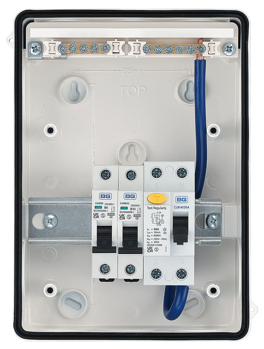 BG CFGAR1A Garage Kit - IP65 Metal Enclosure, 40A Type A 30mA RCD, 6+32A MCB