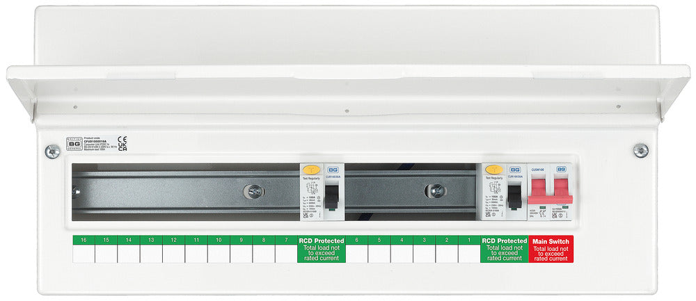 BG CFUD1000016A BG 22 Module 16 Way Unpopulated + 100A Switch, 2x100A Type A 30mA RCD