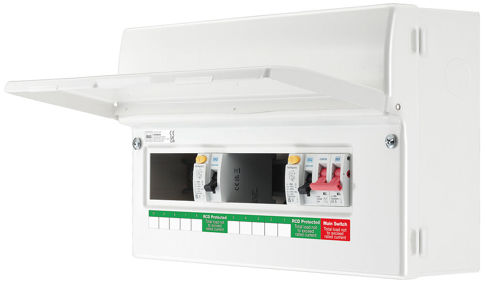 BG CFUD6610A BG 16 Module 10 Way Unpopulated + 100A Switch, 2x63A Type A 30mA RCD