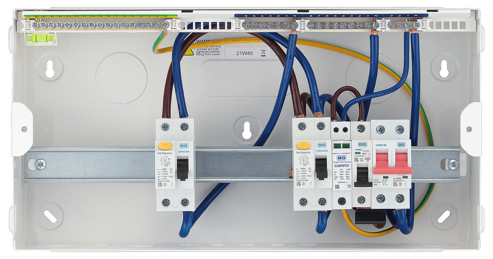 BG CFUD6611ASPD 19 Module 11 Way Unpopulated + 100A Switch, 2x63A Type A RCD, 1xSPD & 1x32A MCB
