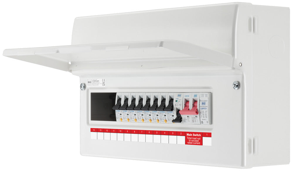 BG 12 Way Consumer Unit + 100A Main Switch, 8 Type A RCBOS, SPD & 32A MCB