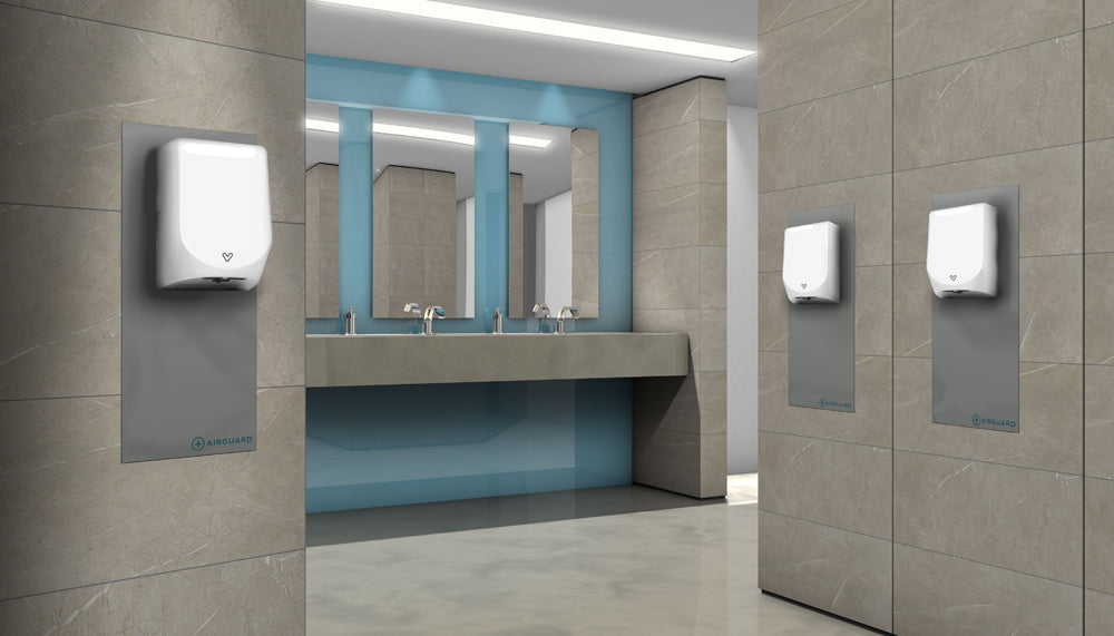 Product Description:The antibacterial hand dryer backboard that protects walls and assists with reducing the spread of bacteria.