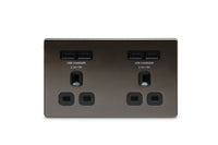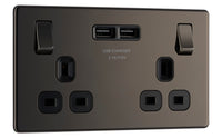 BG FBN21U2B Flatplate Screwless Single Socket + 2x USB - Black Insert - Black Nickel