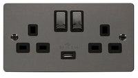 Click Define FPBN586BK Flat Plate 13A Ingot 2G Switched Socket + Type A&C USB - Black Nickel (Black)