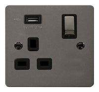 This item is 13A Ingot 2G Switched Socket + Type A&C USB - Black Nickel (Black)