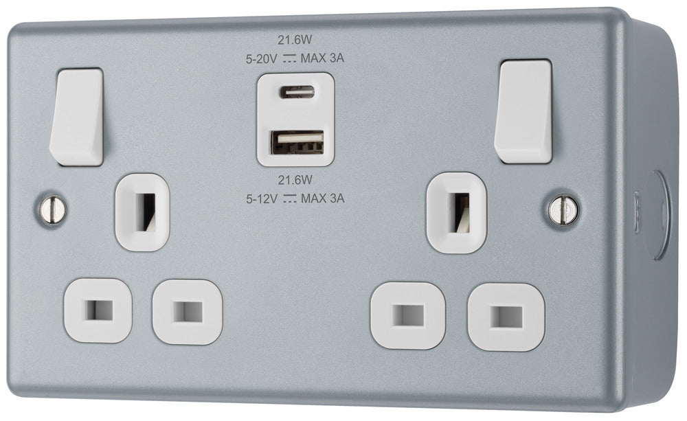BG MC522UAC22 Metal Clad 13A Double Switched Power Socket + USB A+C (22W)