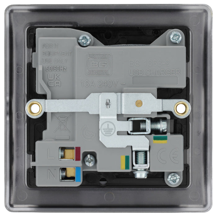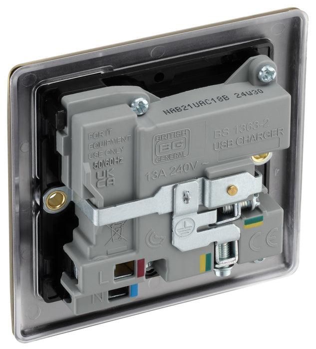 BG NAB21UAC18B Nexus Metal 13A Single Switched Power Socket + USB A+C (18W) - Antique Brass + Black Insert