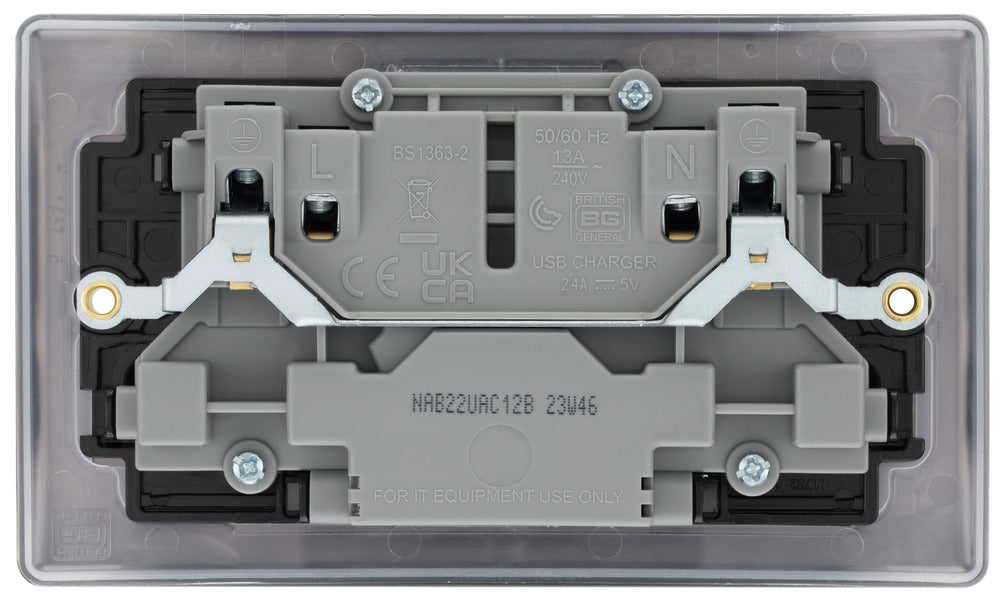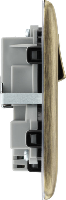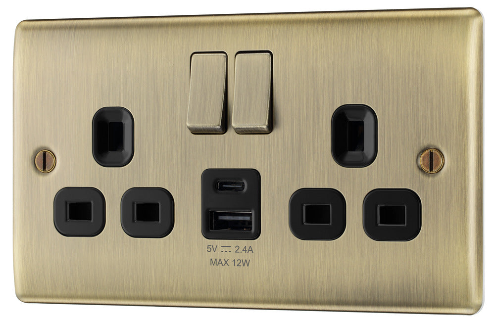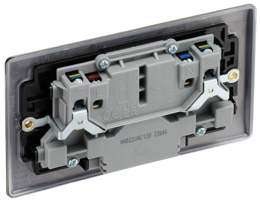 BG NAB22UAC12B Nexus Metal 13A Double Switched Power Socket + USB A+C (12W) - Antique Brass + Black Insert
