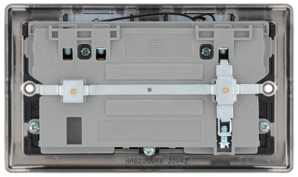 BG NAB22UWRB Nexus Metal Double Socket 13A + Wifi Extender +1x USB(2.1A) - Black Insert - Antique Brass