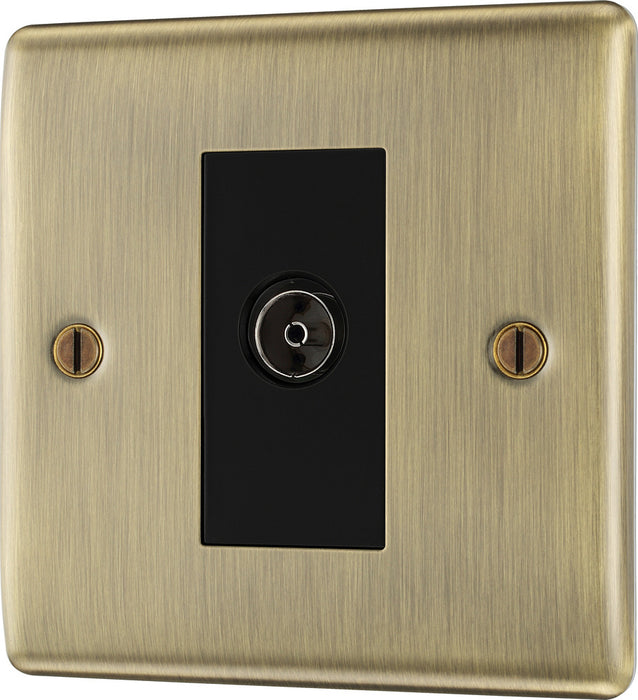 BG NAB62 Nexus Metal Isolated TV Aerial Socket - Black Insert - Antique Brass