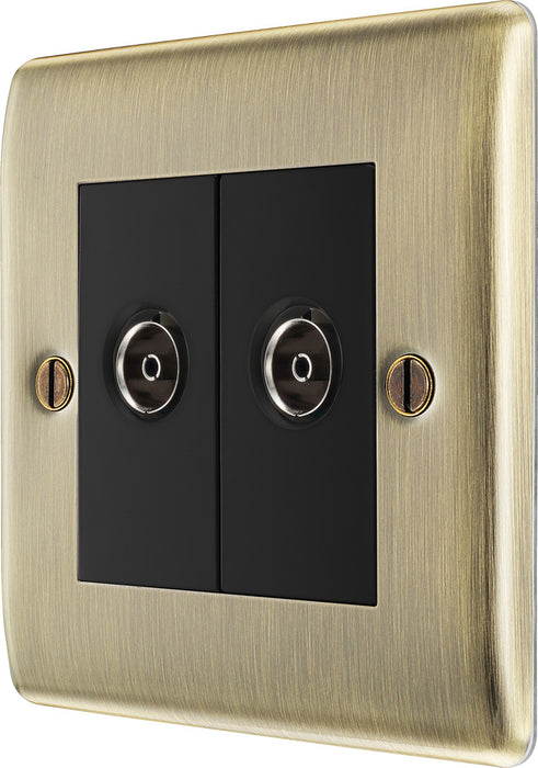 BG NAB63 Nexus Metal Isolated Double TV Aerial Socket - Black Insert - Antique Brass