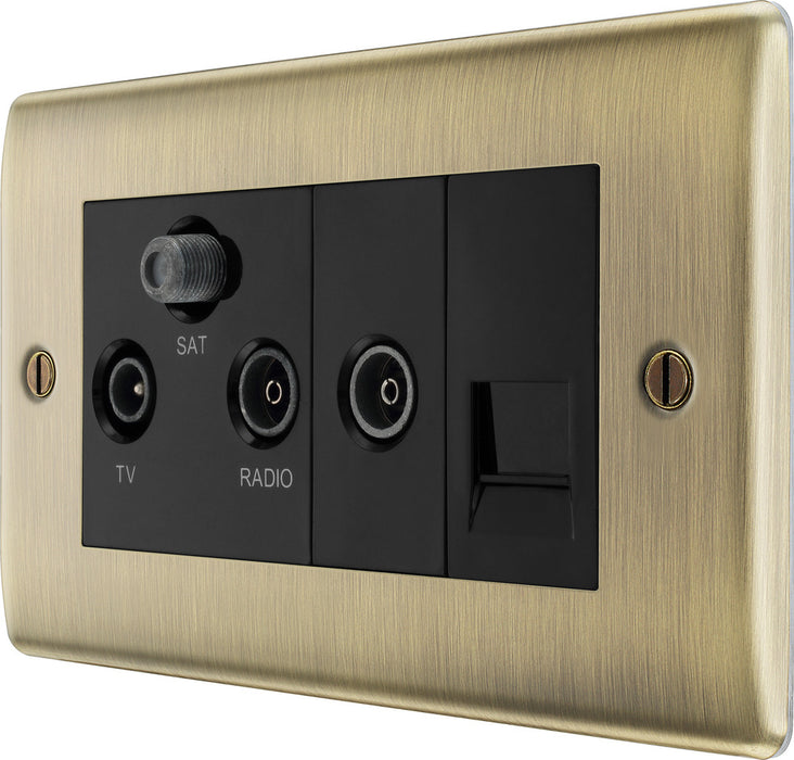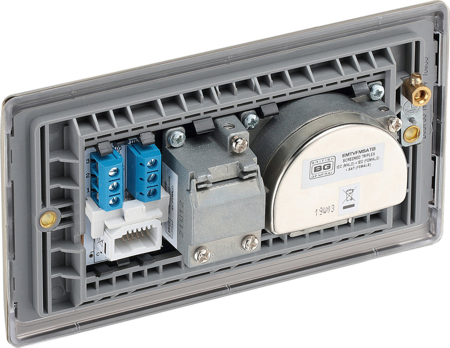 BG NAB68 Nexus Metal Triplex TV/FM/Sat Socket + Return & Tel. - Black Insert - Antique Brass