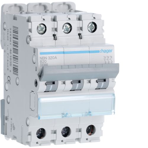 Hager NBN320A 20A Triple Pole B Curve 10kA MCB