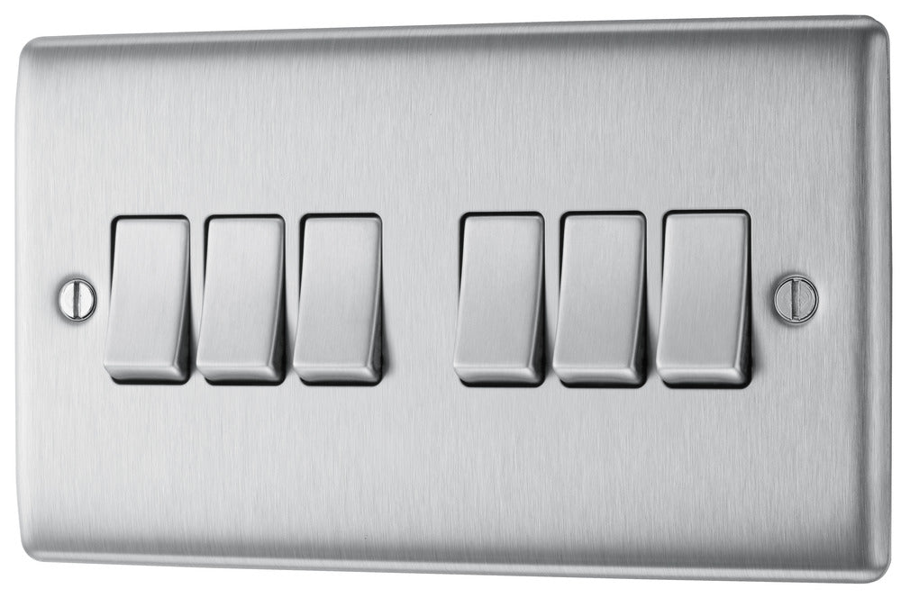 BG NBS46 Nexus Metal 20A 16AX 2-Way 6 Gang Light Switch - Brushed Steel