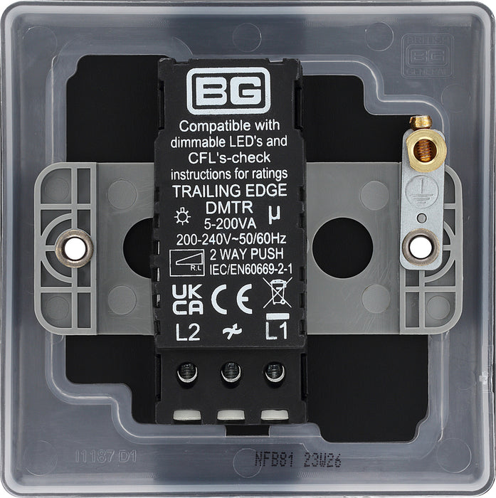 BG NFB81 Nexus Metal 2-Way Single Trailing Edge Dimmer Push On/Off - Matt Black + Black Knob