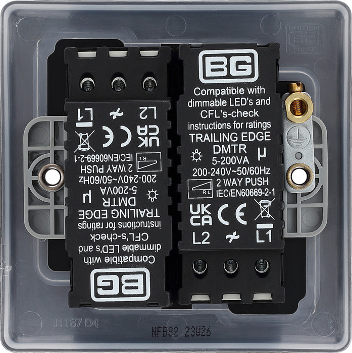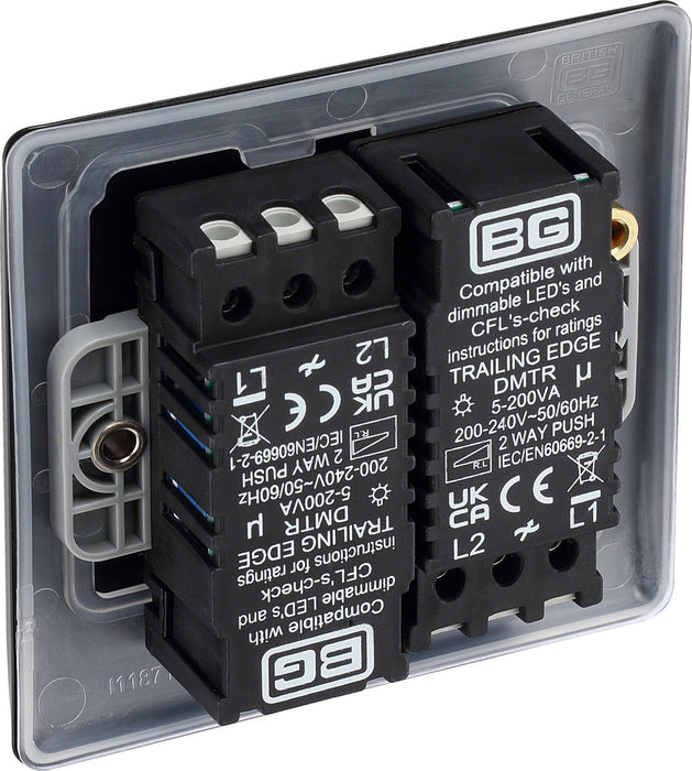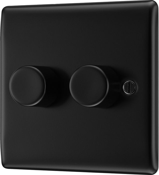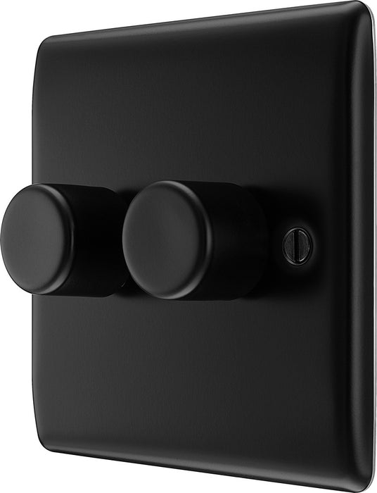 BG NFB82 Nexus Metal 2-Way Double Trailing Edge Dimmer Push On/Off - Matt Black + Black Knobs