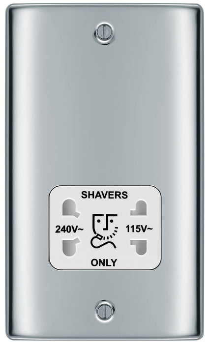 BG NPC20W Nexus Metal Dual Voltage Shaver Socket - White Insert - Polished Chrome