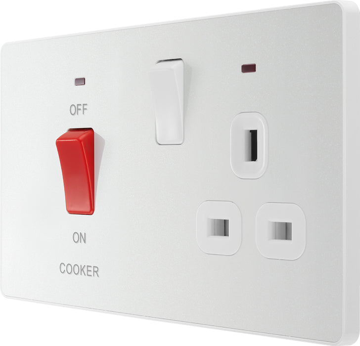 BG Evolve PCDCL70W 45A Cooker Control Socket, Double Pole Switch with LED Power Indicator - Pearlescent White (White)