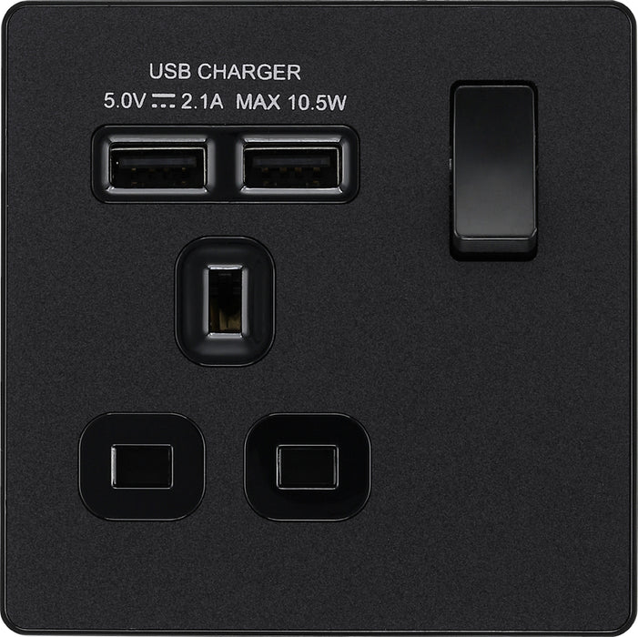 BG Evolve PCDMB21U2B 13A Single Switched Power Socket + 2xUSB(2.1A) - Matt Black (Black)