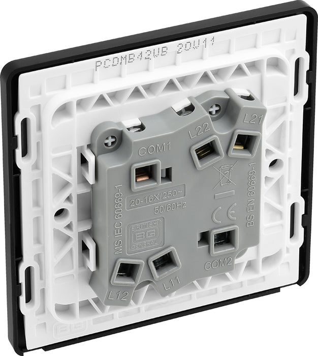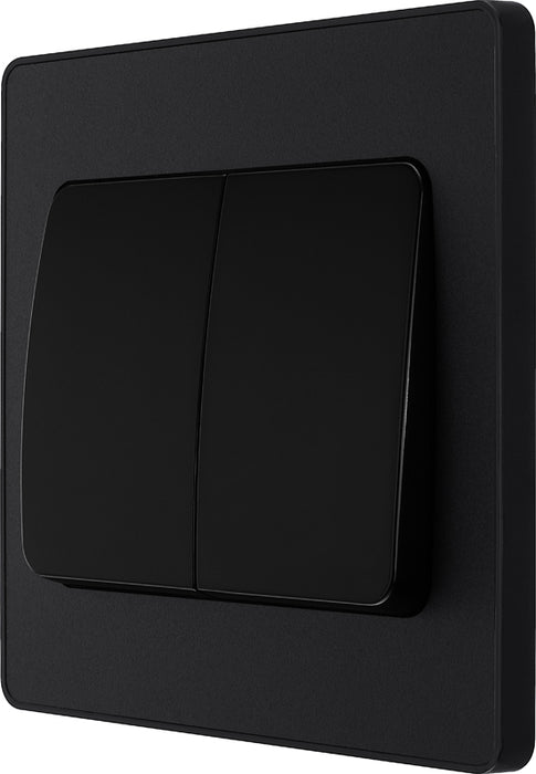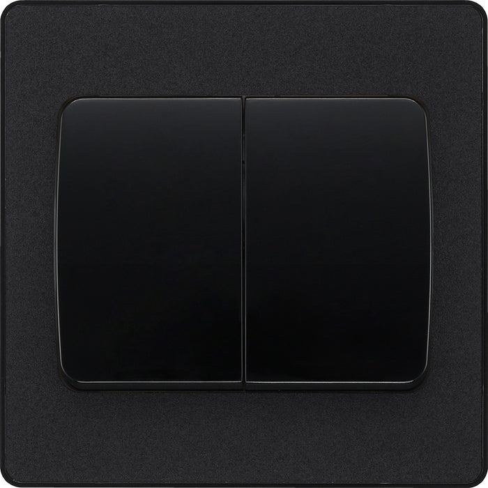 BG Evolve PCDMB42WB 20A 16AX 2 Way Double Light Switch, Wide Rocker - Matt Black (Black)