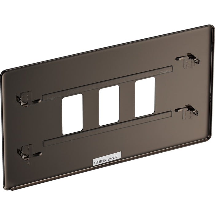 BG RFBN3 Flatplate Screwless 3G Grid Front Plate - Black Nickel