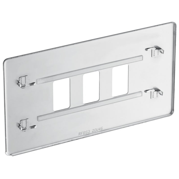 BG RFBS3 Flatplate Screwless 3G Grid Front Plate - Brushed Steel