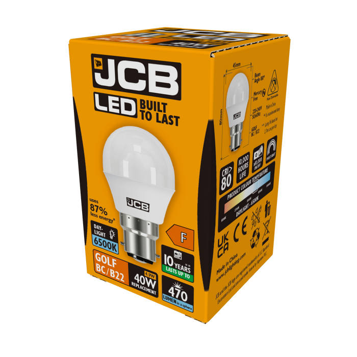 JCB S10970 B22 BC Golf LED Bulb Opal 4.9W 470lm Daylight 6500K (12 Pack)