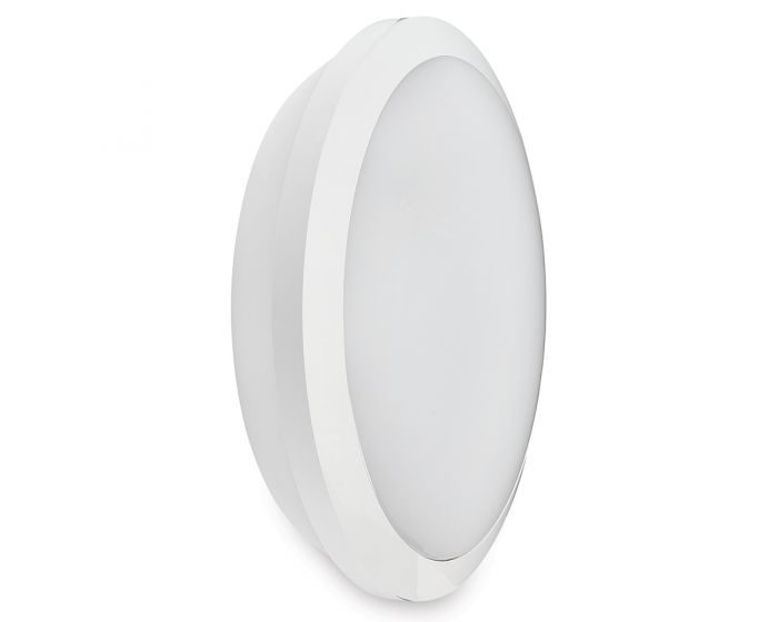 Collingwood WL9527CCS 15-25W IP65 1750-3000lm CCT Round LED Bulkhead with Emergency & Microwave Sensor - White
